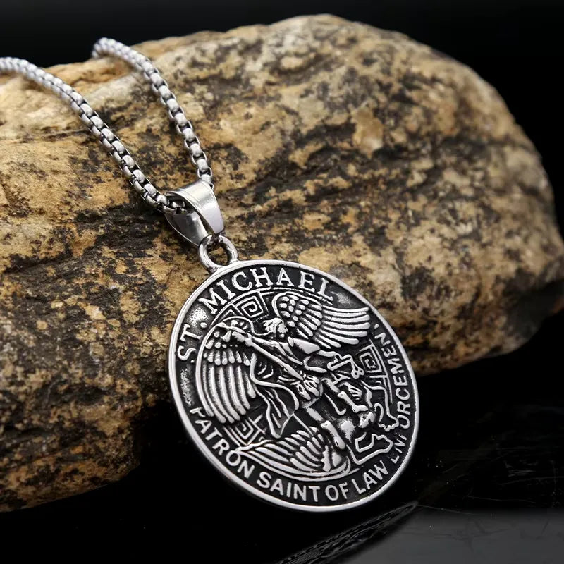 Mensaje en la parte posterior: Contiene un mensaje inspirador de protección y fe, recordándote la fuerza del Arcángel San Miguel en tu vida.
