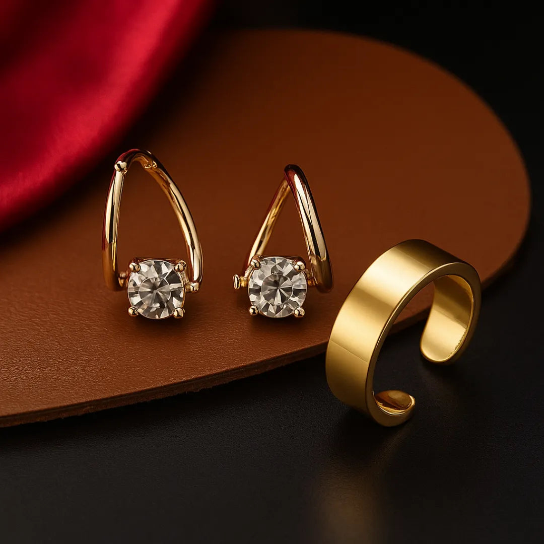 PAR Pendientes de germanio con magnetoterapia para linfopatía COLOR DORADOS en Acero inoxidable + 1 Anillo terapéutico magnético