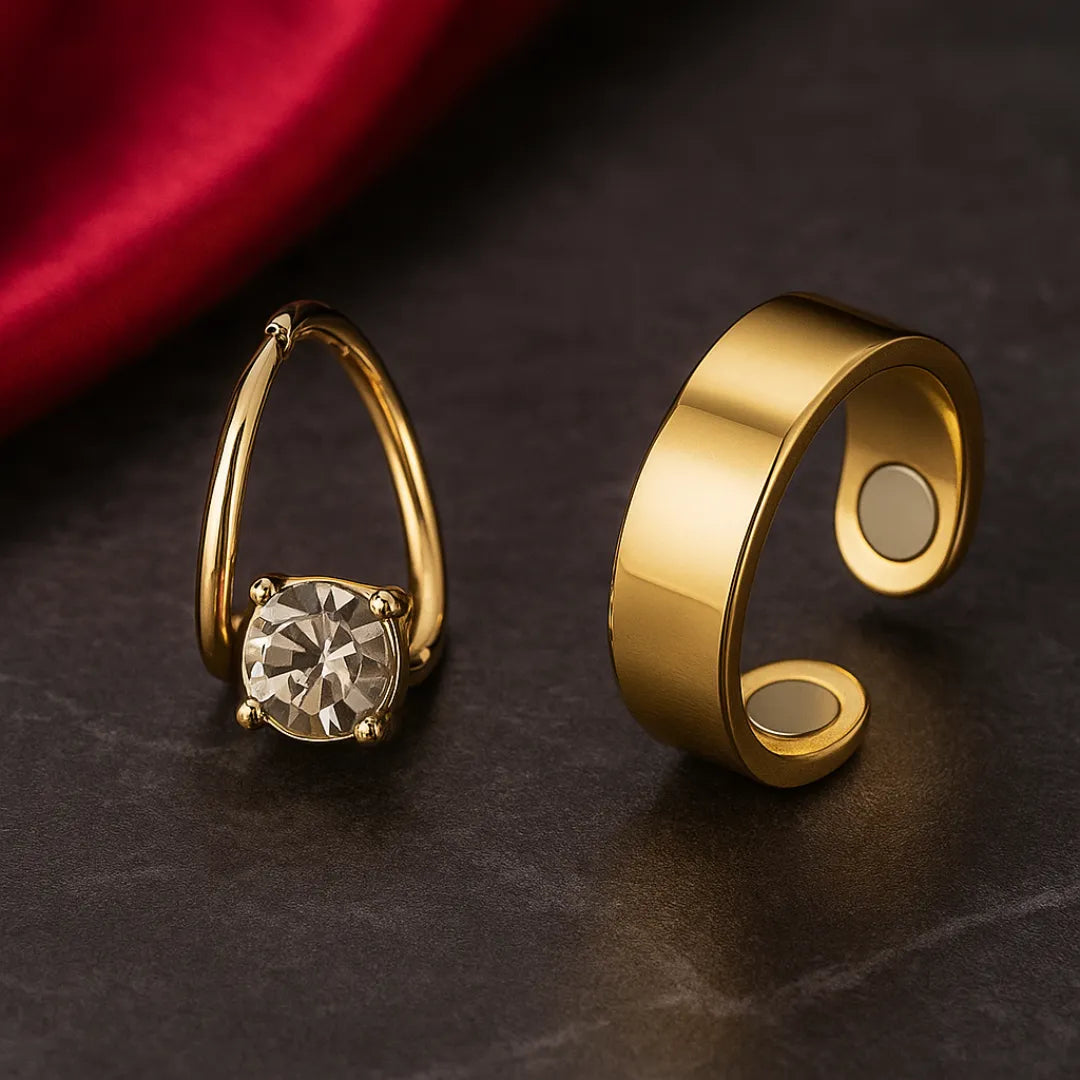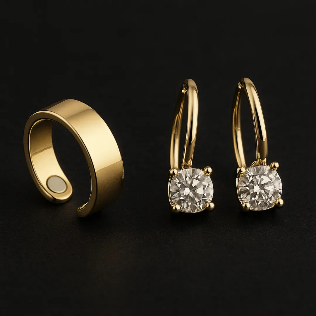 El uso combinado de pendientes  y el anillo terapéutico magnético potencia aún más estos beneficios, ya que ambos trabajan en conjunto para mejorar la circulación, acelerar el metabolismo y favorecer el drenaje linfático.