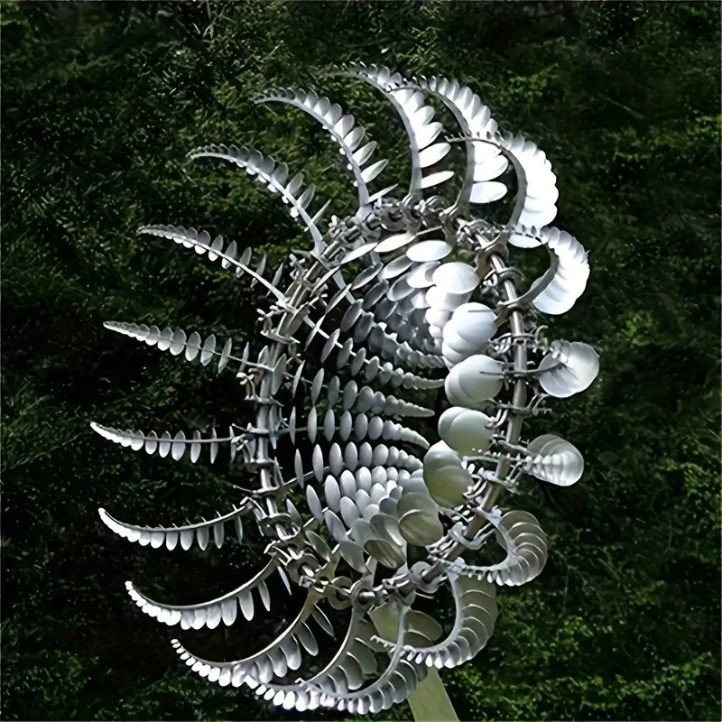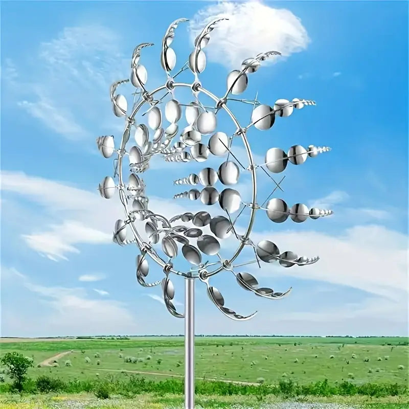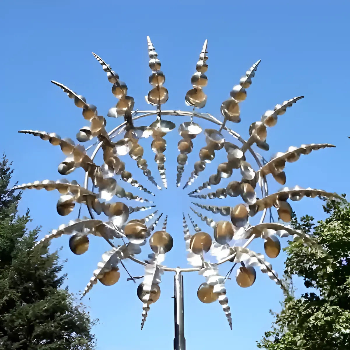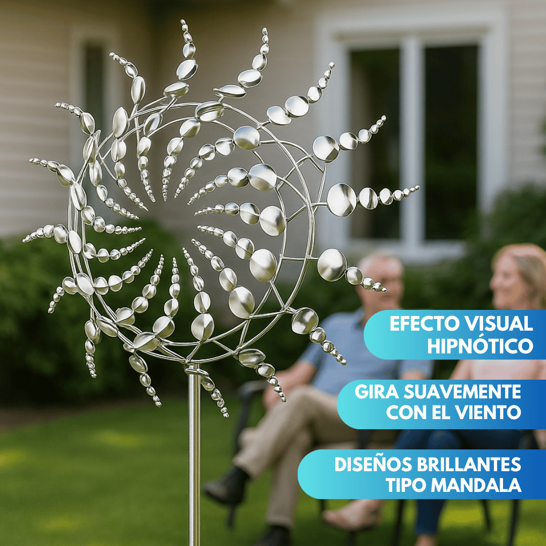 Cada giro de sus aspas refleja la luz y baila con la brisa, convirtiendo tu espacio exterior en una obra de arte viva que cambia con el día.
