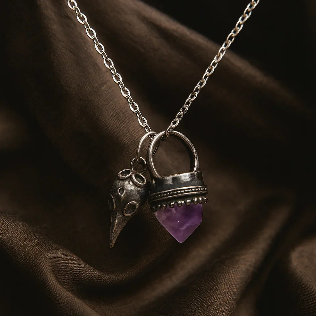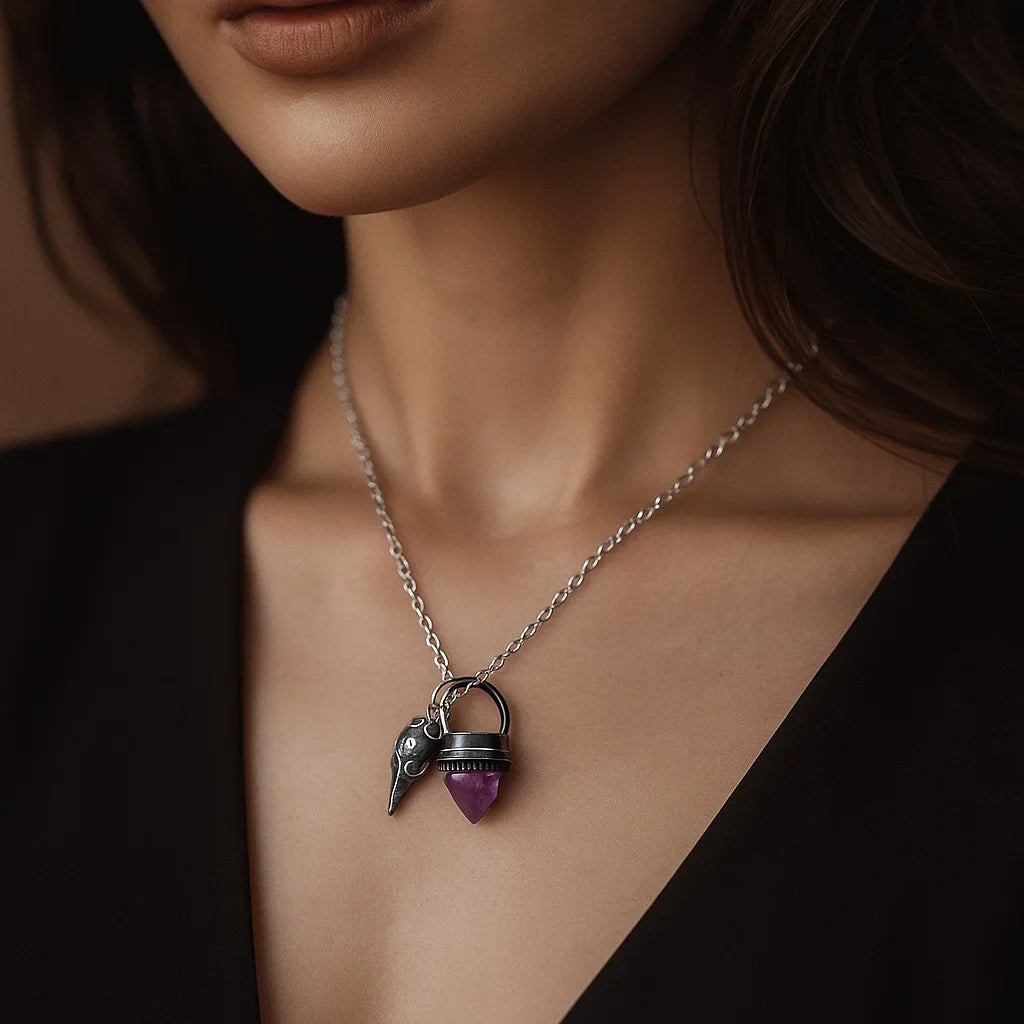 Mystica™ Colgante Talismán Cuervo & Amatista