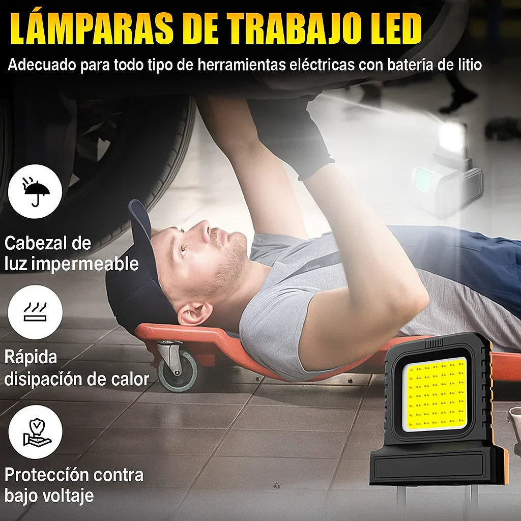 Es perfecto para trabajos nocturnos, reparaciones de autos, mantenimiento en el hogar, emergencias eléctricas, camping o cualquier actividad al aire libre. Además, su instalación es extremadamente sencilla: solo conecta la batería y tendrás luz.